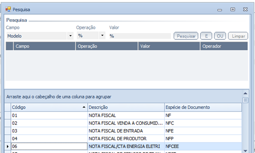 A seguir, apresenta-se um exemplo de um dos campos alterados. Esta é a versão anterior da tela: