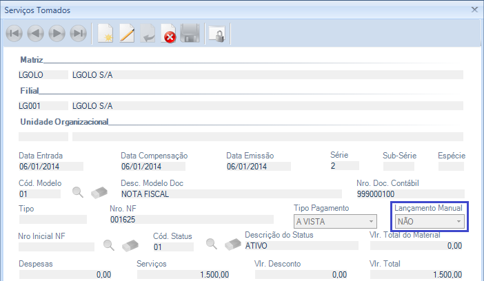 Descrição da Nota: Tratamento efetuado na tela de Serviços Tomados, para que não seja apresentado erro na inclusão de um item manualmente, em notas carregadas pela interface.