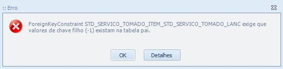 ForeignKeyConstraint STD_SERVICO_TOMADO_ITEM_STD_SERVICO_TOMADO_LANC exige que valores de chave filho (-1) existam na tabela pai.