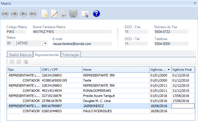 Tratamento efetuado no processamento da DIRF para considerar os representantes legais vigentes.