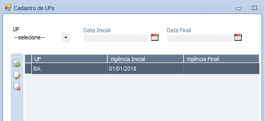 Ao clicar em Cadastrar UFs, será aberta a tela: