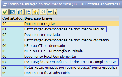 A seguir, apresenta-se a tabela do SAP “Código de situação do documento fiscal”: