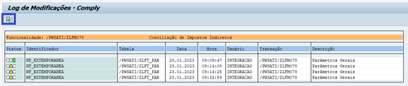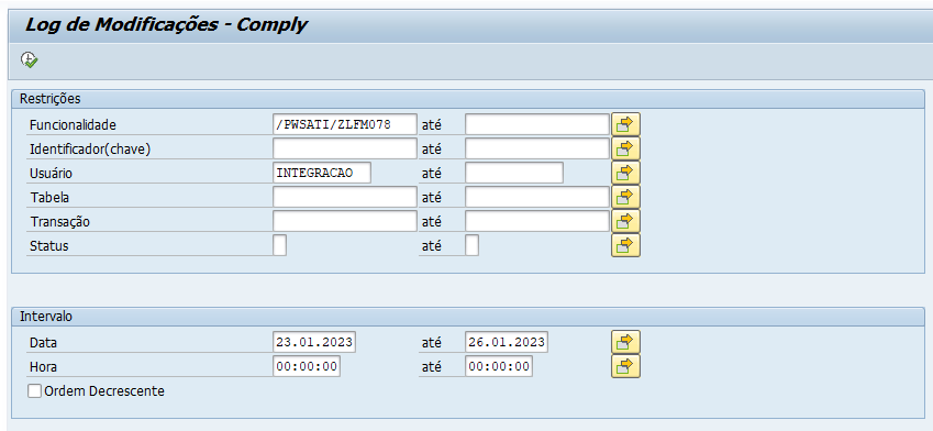 Iniciamos a Evolução dos Extratores, desde a Nota 014195, na qual, foi criado um controle de auditoria para as transações, que são de parametrizações, e também a criação do Relatório “Log Modificações” para consulta das ações de inserções, deleções ou alterações realizadas nas transações/telas de parametrizações inerentes ao processo de Extração dos Extratores Z-Sonda do Comply.
