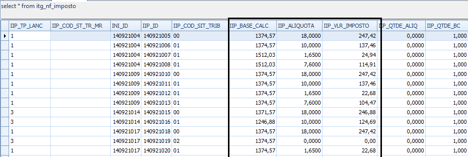 Tabela 'ITG_SERVICO_TOMADO_IMPOSTO': 'ORA-24381: error(s) in array DML