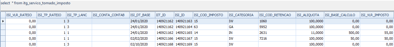 Tabela ITG_SERVICO_TOMADO_IMPOSTO sem registros