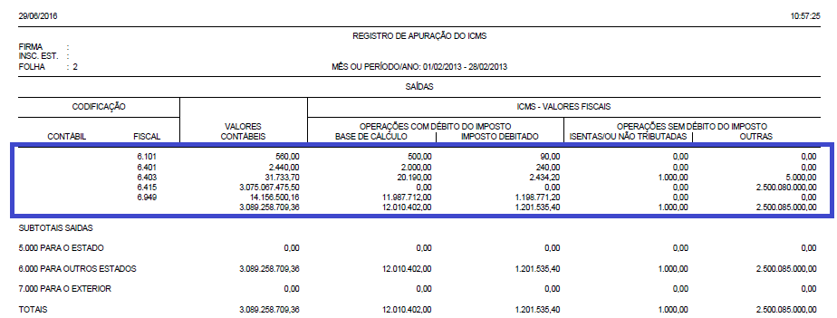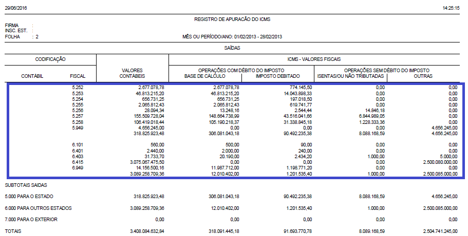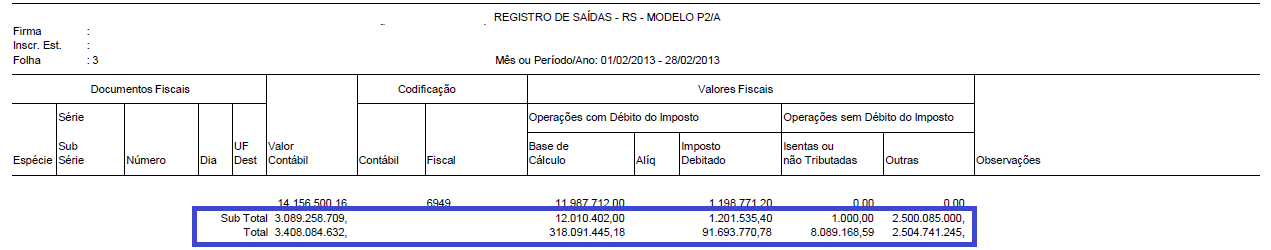 Descrição da Nota: Tratamento efetuado no Livros Registro de Saídas (MOD 2 e MOD 2A) e no Livro Registro de Apuração do ICMS (MOD 9).