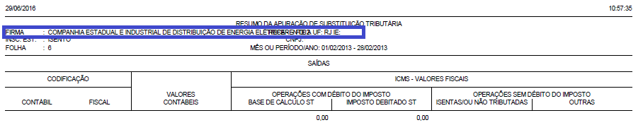 Feito tratamento no Livro Registro Apuração do ICMS (MOD 9) para demonstrar as informações sobre Telecom e na páginas referente ao ICMS ST (Eventual e Oficial) a razão social não está mais sobrescrevendo o cabeçalho.