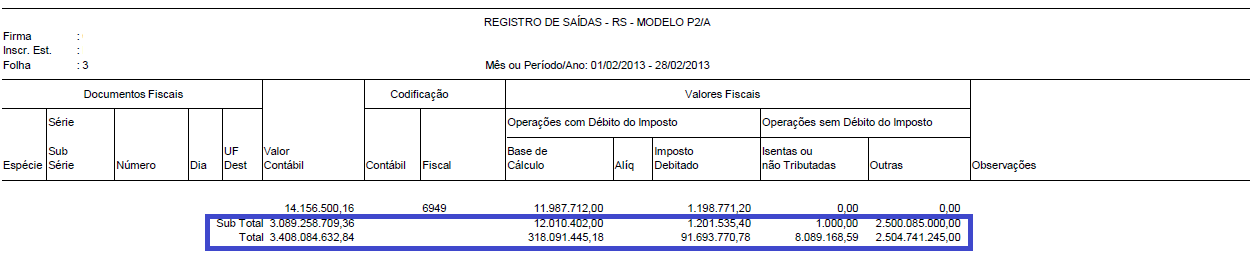 No Livro Registro de Saídas (MOD2 A) Eventual e Oficial para Telecom não estava sendo somado os valores de descontos no campo de observações e na coluna de Valor contábil e Outras não estava sendo apresentado as casas decimais no Sub - Total e Total.