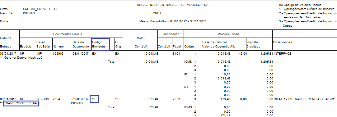 No Registro de Entradas, com a informação de Emitentes estava sendo impresso o Nome Fantasia
