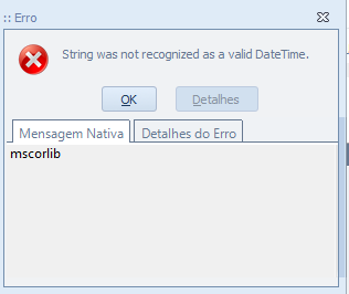 Ao clicar no combo Cod.Ajuste SEFAZ o sistema apresentava a seguinte mensagem:
