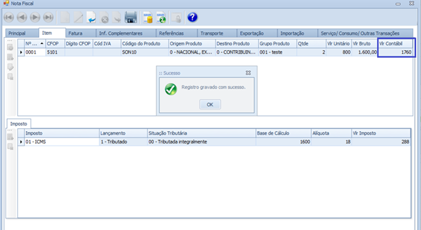 Tratamento no campo Vlr Contábil, presente na tela Nota Fiscal, a fim de atualizar os cálculos quando incluir ou excluir o imposto IPI.