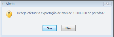 Se no período mensal que deseja exportar os lançamentos, existir mais de 1.000.000 de partidas, clicar em SIM. A seguinte tela será aberta: