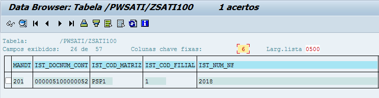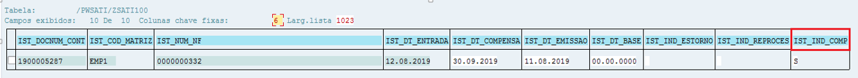 Exemplo docnum 72021, campo IST_NUM_NF da tabela intermediária /PWSATI/ZSATI100 preenchido corretamente