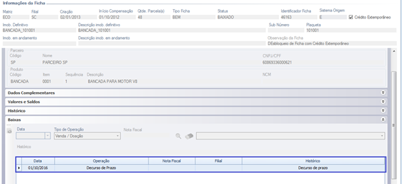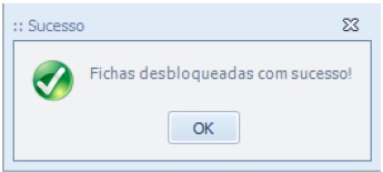 , as fichas serão desbloqueadas e será apresentada a mensagem Fichas desbloqueadas com sucesso, sendo possível visualizar a ficha na tela de manutenção de fichas.