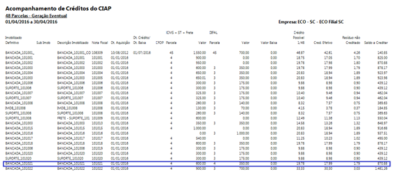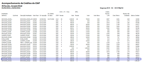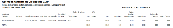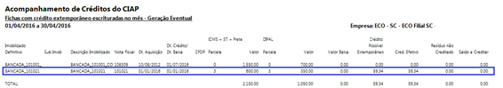 Apresentação de Fichas no Relatório de Acompanhamento de Crédito (Eventual e Oficial).