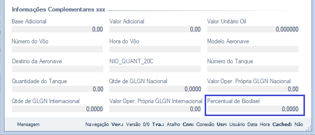 Foi incluído o campo NIO_PER_BIODIESEL, decimal (7,4), na tabela BSC_NF_ITEM_OIL.