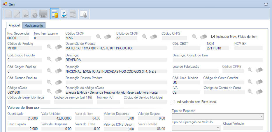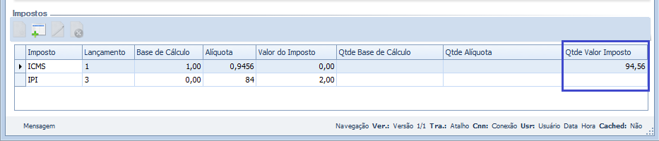 Além disso, foi incluído o campo NIP_QTDE_VLR_IMP, decimal (15,2), na tabela BSC_NF_IMPOSTO. A seguir apresenta-se o campo na tela: