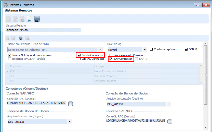 Apesar da questão do suporte descontinuado à librfc32.dll, também torna-se possível configurar um ambiente SAP com configuração de Load Balance, que somente é possível através da opção SAP Connector, para que seja possível extrair os dados do SAP a partir do Sonda Connector.