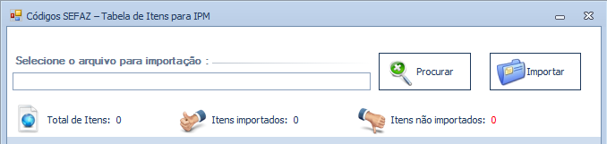 Ao clicar no botão, será aberta a tela de Importação abaixo: