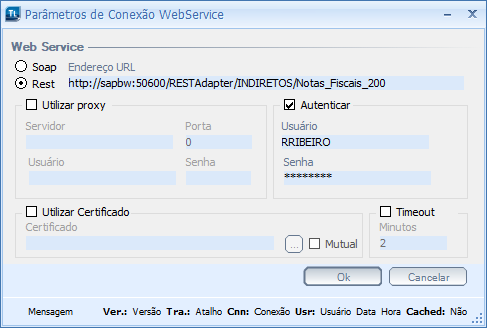 2. Parametrizar a Conexão do WebService do SAP PI/PO, conforme exemplo: