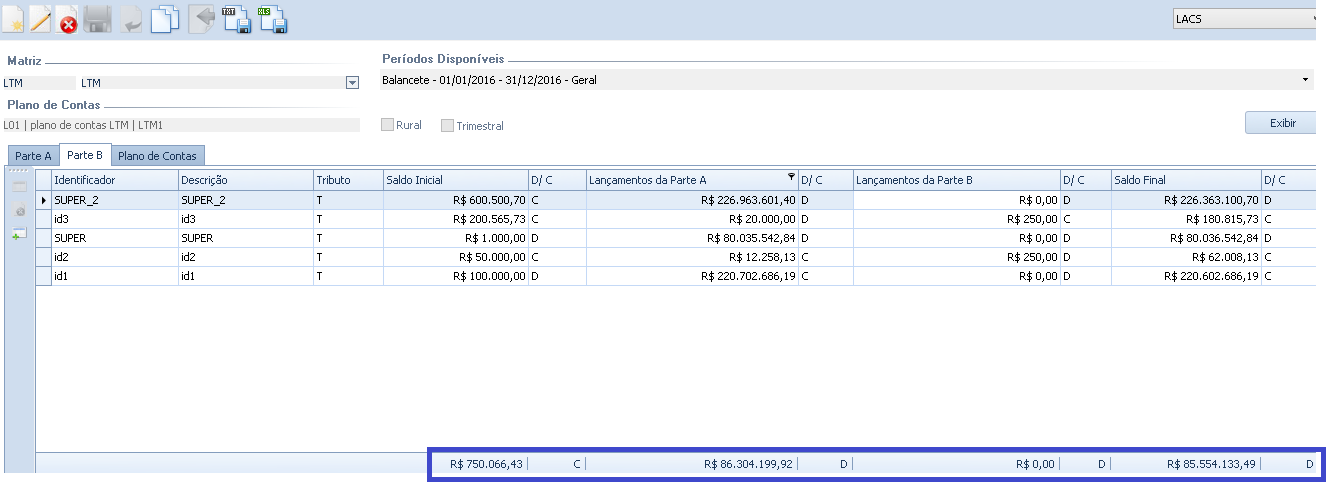Descrição da Nota: Tratamento efetuado na tela do LALUR - LACS com inclusão de totalizadores na parte B, correção de lançamentos manuais sem vínculo com a parte A e correção do relatório Diferido.