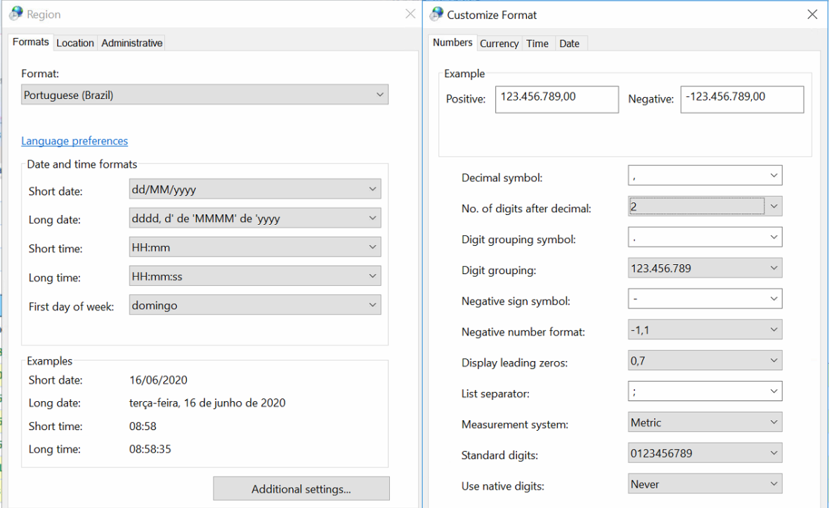 1- O servidor de aplicação deve está configurado com 'Configurações Regionais: formato Português (Brasil) conforme Manual de Instalação da Framework (Pagina 5) - Item: 3. REQUISITOS - 3.1.REQUISITOS COMPLY: Requisitos de Instalação/Configuração'