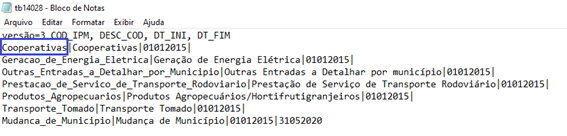 Como exemplo temos o arquivo de MG, que tem como COD_IPM a própria descrição.