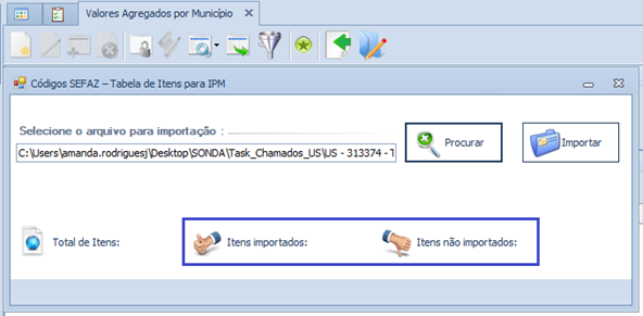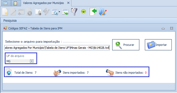 Melhoria realizada na tela Valores Agregados por Município, com a inclusão do campo UF do Arquivo, para importação de tabelas com leiaute diferente.