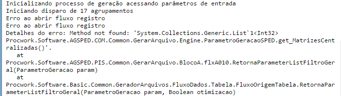 Tratamento efetuado para corrigir erro ao abrir fluxo no processo da geração.