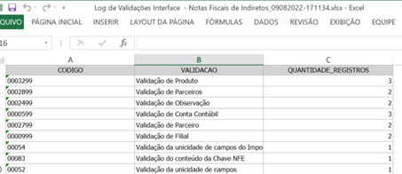 Acesse no Menu de Extração de Interfaces e conheça o Relatório. Ao clicar no botão Relatório Agrupado, os erros de validação ocorridos no processo poderão ser exportados somente na extensão .xlsx do Excel: