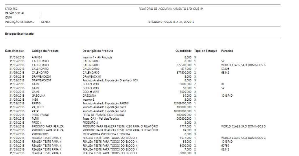 K200 – Estoque Escriturado