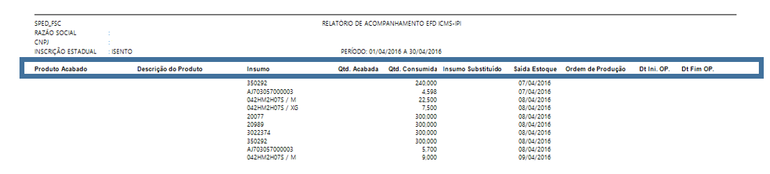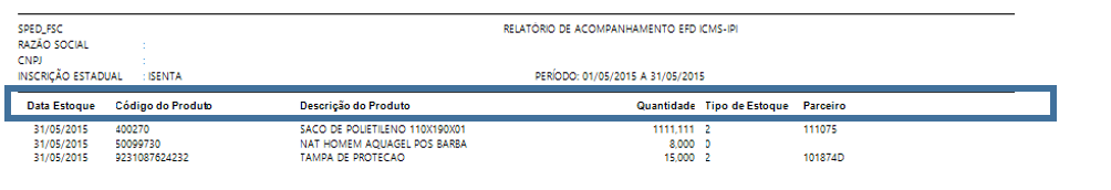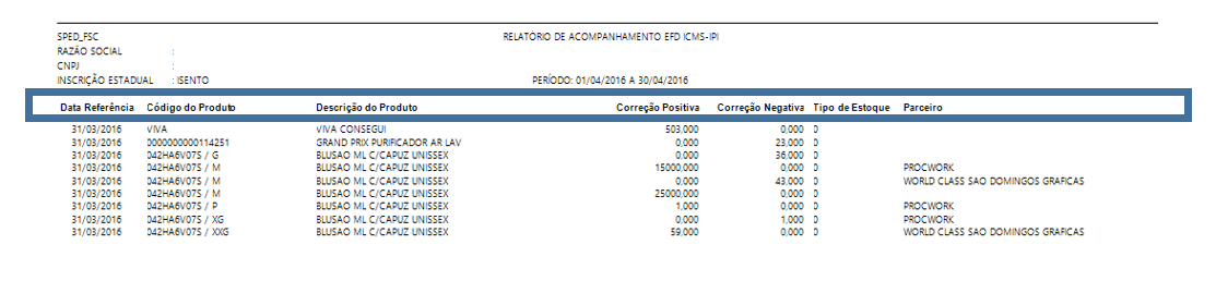 Melhoria efetuada no 'Relatório – Acompanhamento de arquivo EFD' para demonstração do cabeçalho nas páginas seguintes.