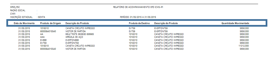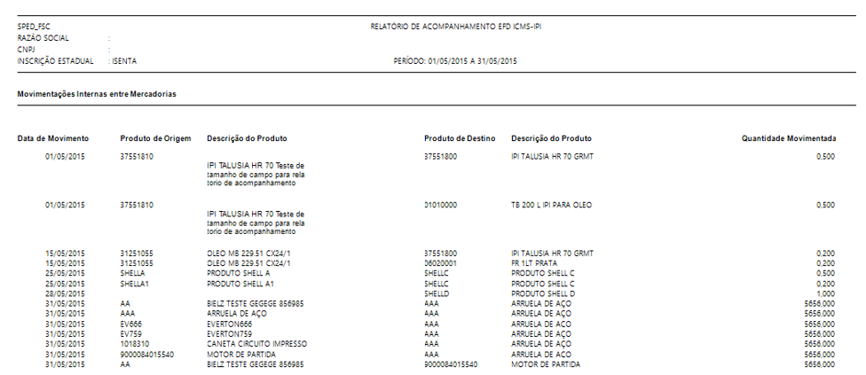 K220 – Movimentações Internas entre Mercadorias