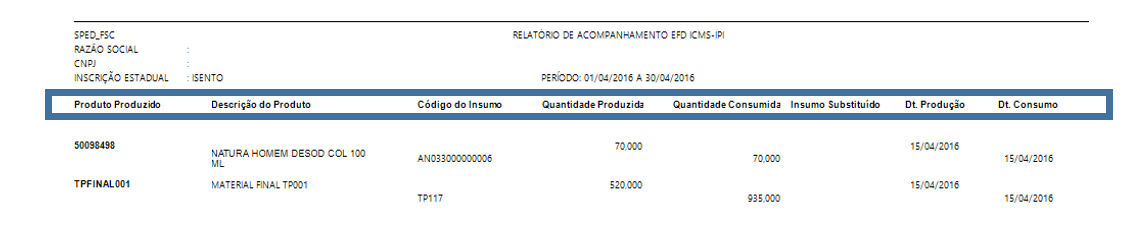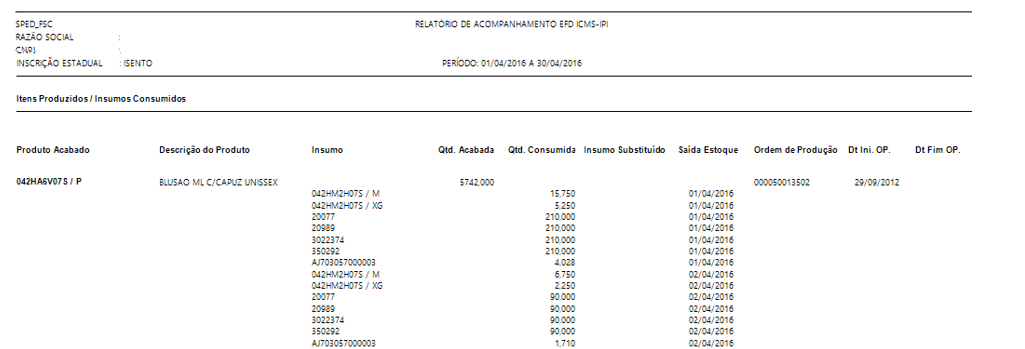 K230 e K235 – Itens Produzidos / Insumos Consumidos