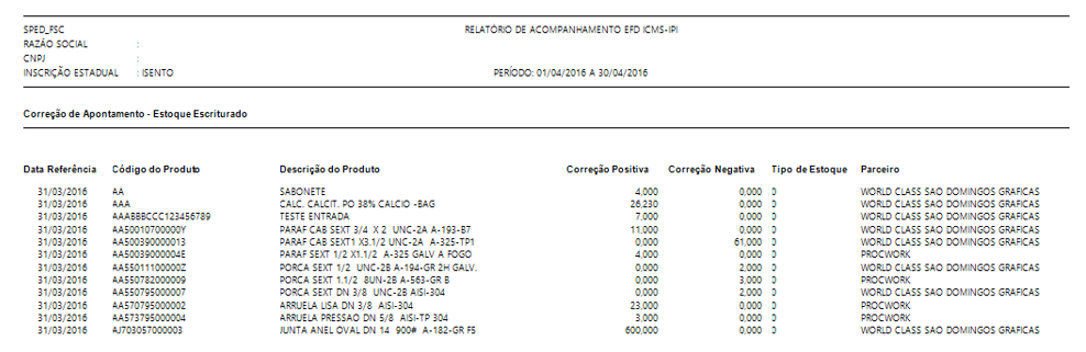 K280 – Correção de Apontamento – Estoque Escriturado
