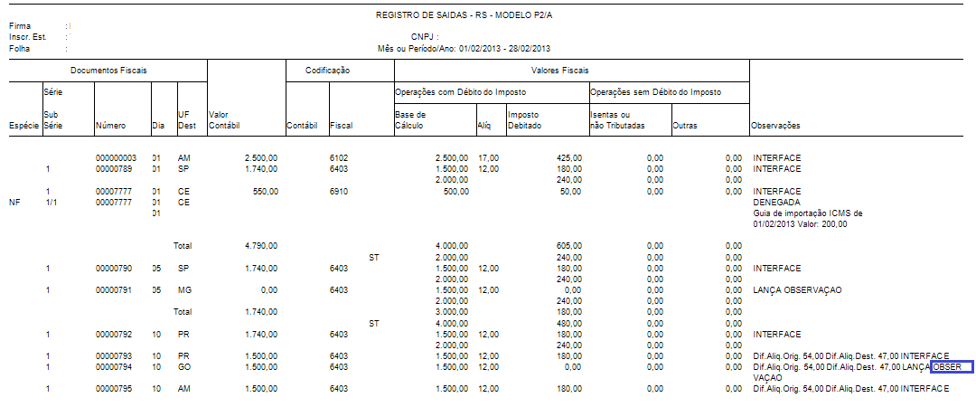 Ao gerar o Livro Registro de Saídas (MOD2 e MOD2A) eventual e oficial, cortava dados (letras/números) do campo Observações, na visualização e na impressão do livro salvo em PDF.