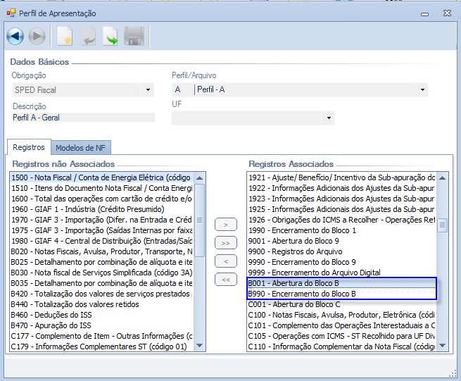 Disponibilizados os novos registros dos Blocos C e 1 nos Perfis de Apresentação padrão, relacionados abaixo: