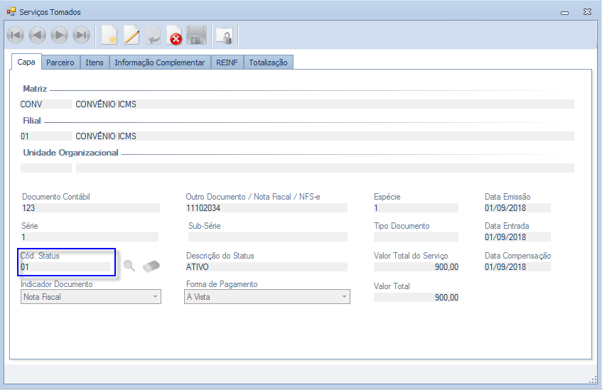 Serão consideradas as Notas Fiscais com status igual a 02 (Inativo) e 03 (Cancelado).