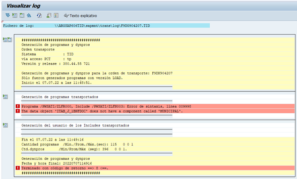 Ao efetuar o transporte da request F9DK904207 – Pacote base 4.00.17.0000, era apresentado o erro de Sintaxes (abaixo), pois o campo MUNICIPAL da J_1BNFDOC não existia na tabela de Capa de Notas Fiscais da SAP (J_1BNFDOC), em questão.