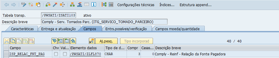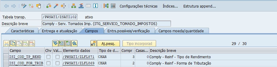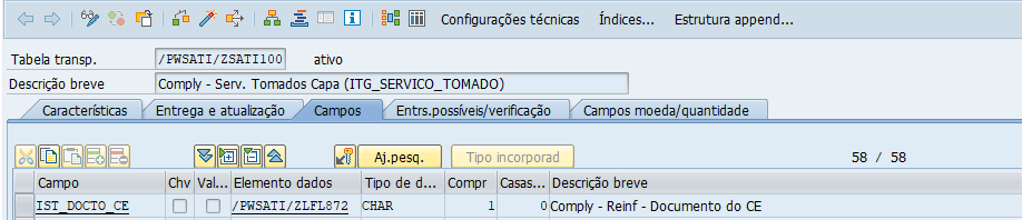 Para que isto ocorra, foram criados campos e parâmetros novos nos processos Abap, conforme abaixo:
