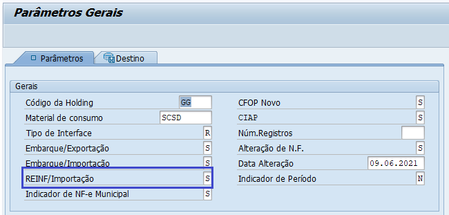 Vejam na imagem a seguir, o parâmetro - REINF/Importação e a sua regra na sequência: