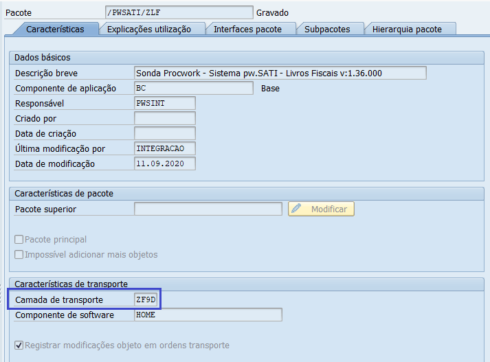 1 - Exibição dos dados da transação /PWSATI/ZLFR003