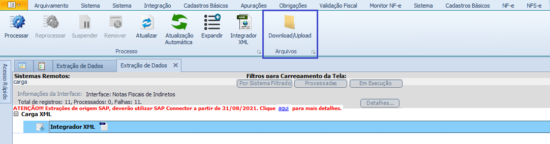 Descrição da Nota: Processo de Extração: Liberação de nova funcionalidade 'Integrador XML' para realizar a extração de arquivos XML
