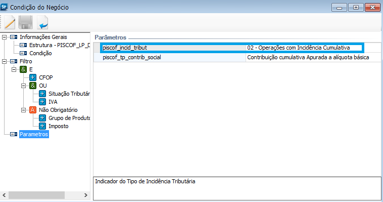 Condição de Negócio parametrizada em 02- Operações com Incidência Cumulativa