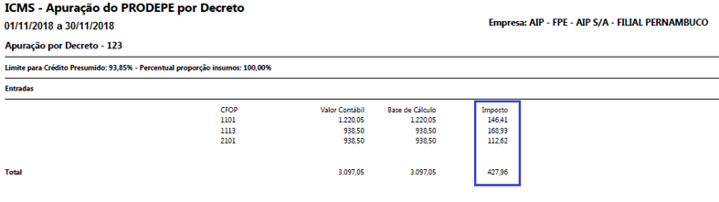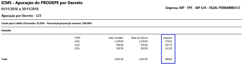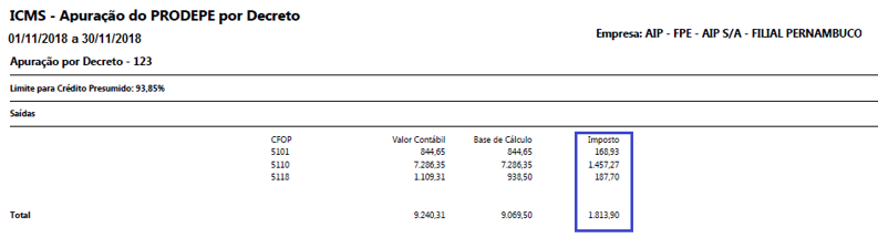 Foi efetuado tratamento no Processo de Apoio ICMS-PRODEPE por Decreto, para somar os impostos 01-ICMS e 70-FECP sobre ICMS destacado na nota fiscal, em atendimento ao Ato Cotepe 44/2018, que instituiu o Guia Prático EFD ICMS/IPI versão 3.0, que dispõe que o valor do FECP deve ser somado ao imposto principal.