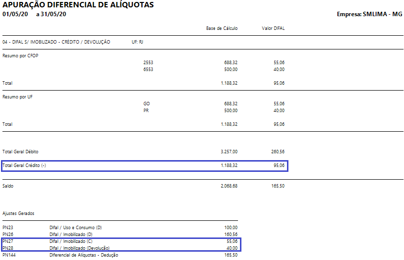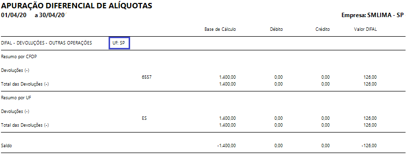 Descrição da Nota: Tratamento realizado no processo de apoio do Diferencial de Alíquotas, com a inclusão de um novo tipo de operação para DIFAL SP; Tratamento nas linhas totalizadoras do relatório para não considerar valores das condições de negócio que não geram ajuste.