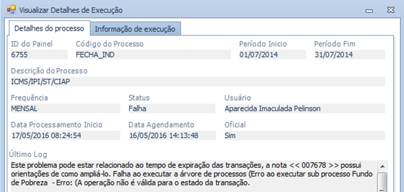 Este problema pode estar relacionado ao tempo de expiração das transações, a nota << 007678 >> possui orientações de como ampliá-lo. Falha ao executar a árvore de processos (Erro ao executar sub processo Fundo de Pobreza - Erro: (A operação não é válida para o estado da transação.
