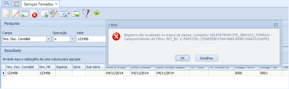 Descrição da Nota: Tela de Serviços Tomados - Correção de Bug na exclusão de lançamentos.
