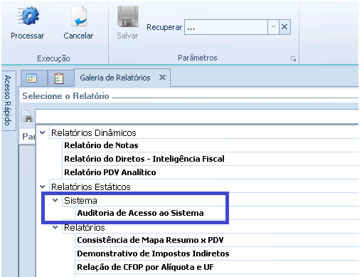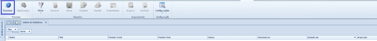 Para gerar o relatório, deve-se selecionar a opção Processar:
