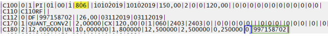 No exemplo supracitado, a quantidade apresentado no campo 03 (QUANT_CONV) será 12 unidades (2 CX = 6 unidades).